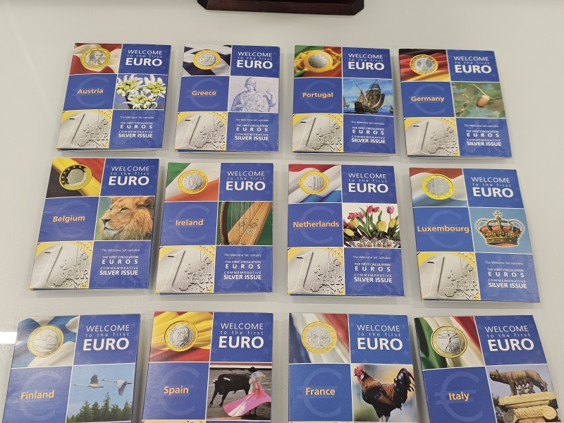 #1518 - 12kpl eurokolikkosarjoja telineessä vuodelta 2002