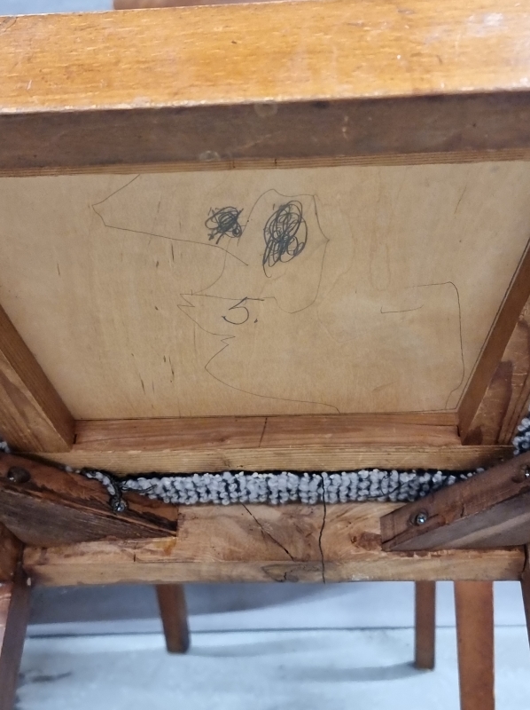 Kulumaa, verhoiluissa vikaa. Lev. 48cm ja kork. 85cm.