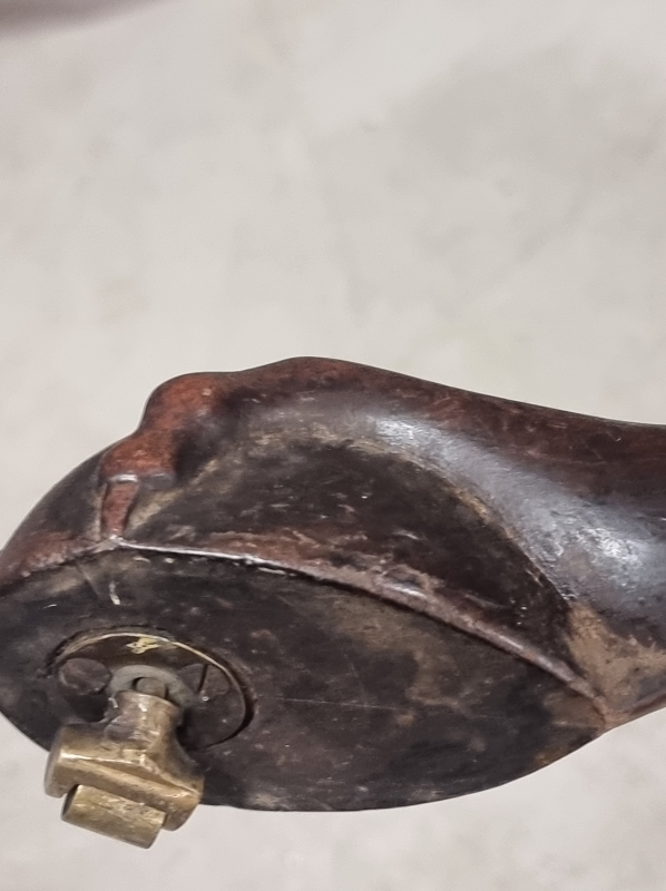 Kulumaa, jalan lukituskiila puuttuu ja pyörien kiinnikkeet taittuneet. Halk. 80cm ja kork. 73cm.