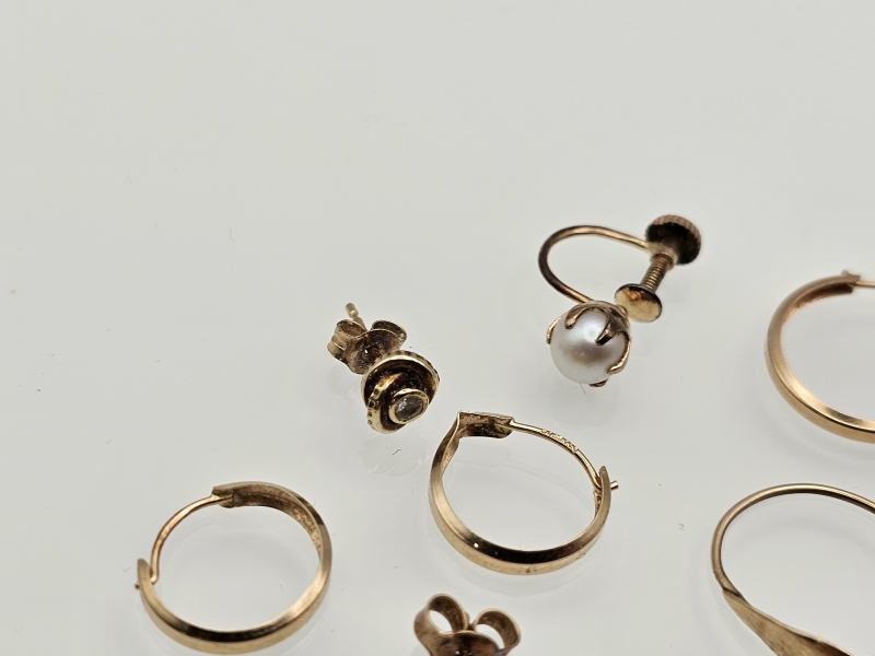 #1183 - Erä 14k kultaisia koruja: Yksittäisiä korvakoruja ja joitakin vääntyneitä, 5,29g