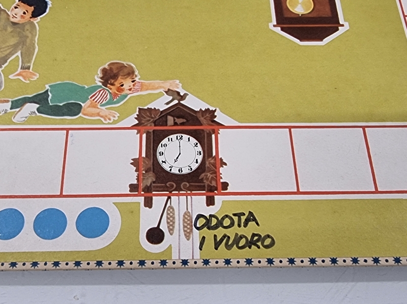 Pelilaudassa piirustusta. Osien lukumäärää ei tarkistettu.