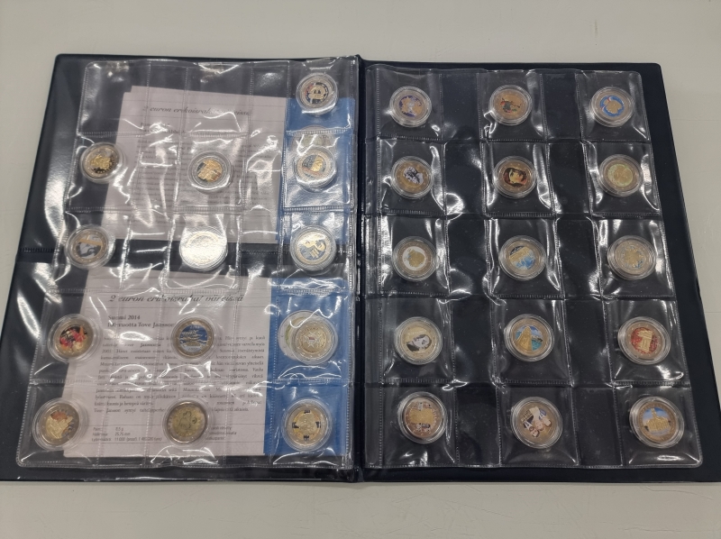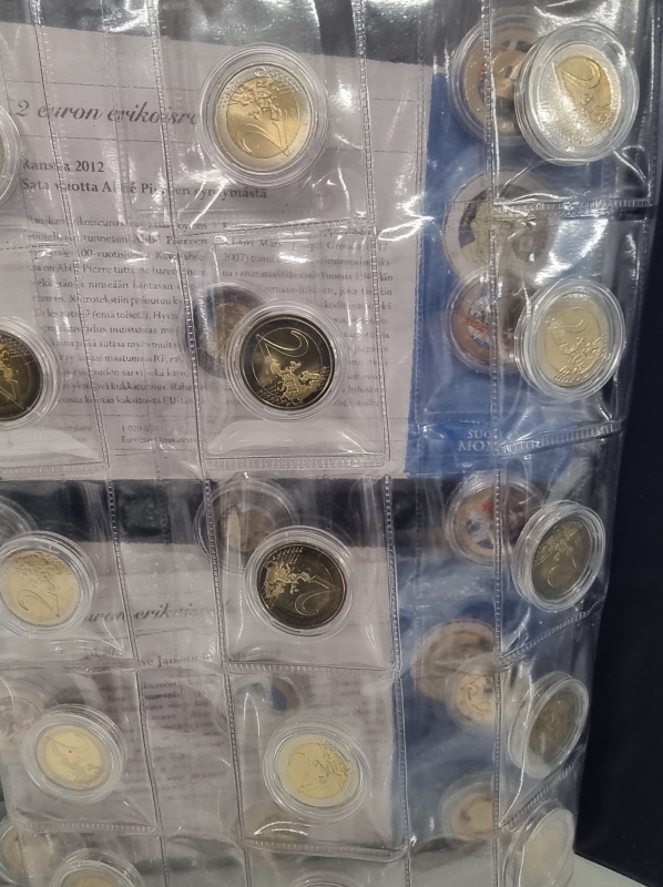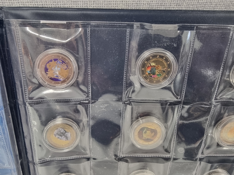 #2049 28kpl 2€ erikoisrahoja väreissä