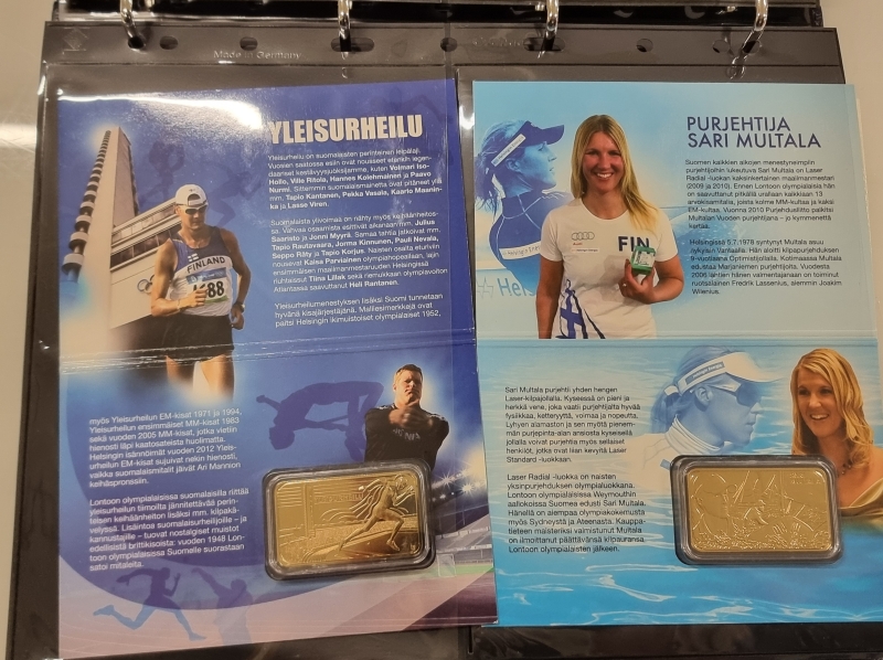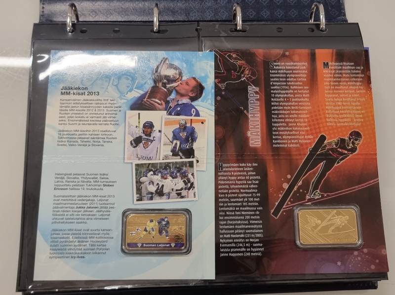 #2198 Urheiluaiheisia keräilyharkkoja kansiossa
