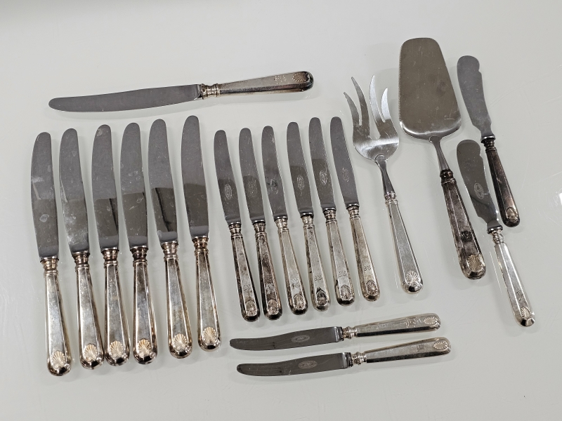 #1240 - Erä hopeisia Musla -sarjan veitsiä ym.