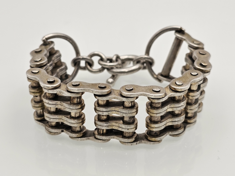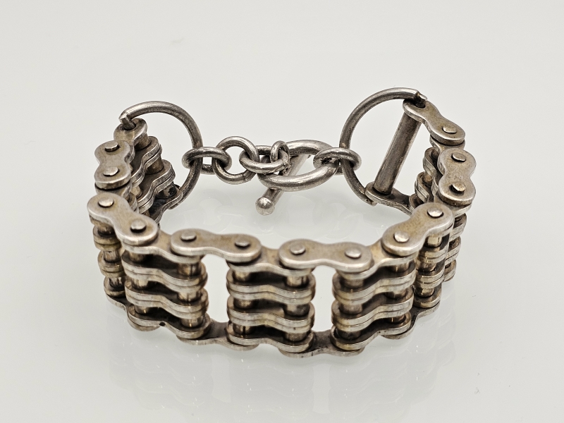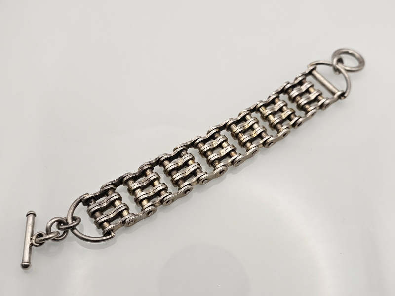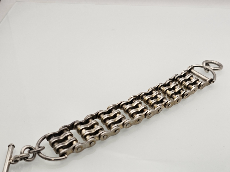 #1243 - Hopeinen "pyöränketju" rannekoru