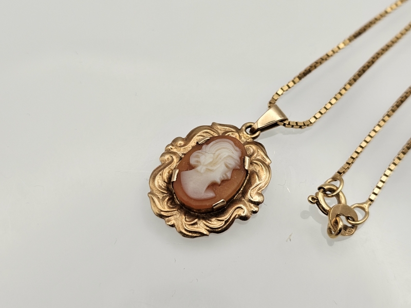 #1247 14k kultainen camee riipus ketjulla, 4,09g