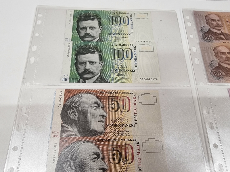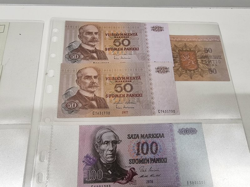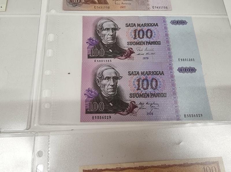 #1859 Vanhoja suomalaisia seteleitä, mm. 2kpl 100 mk seteleitä vuodelta 1976