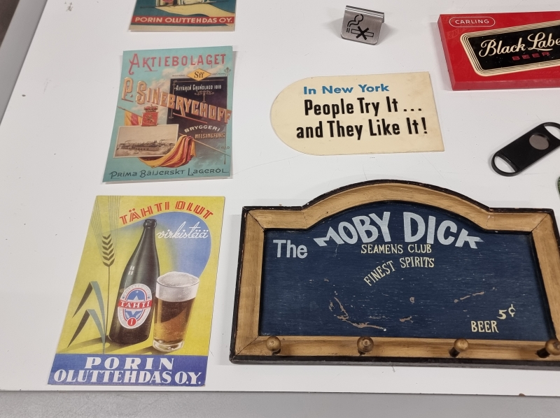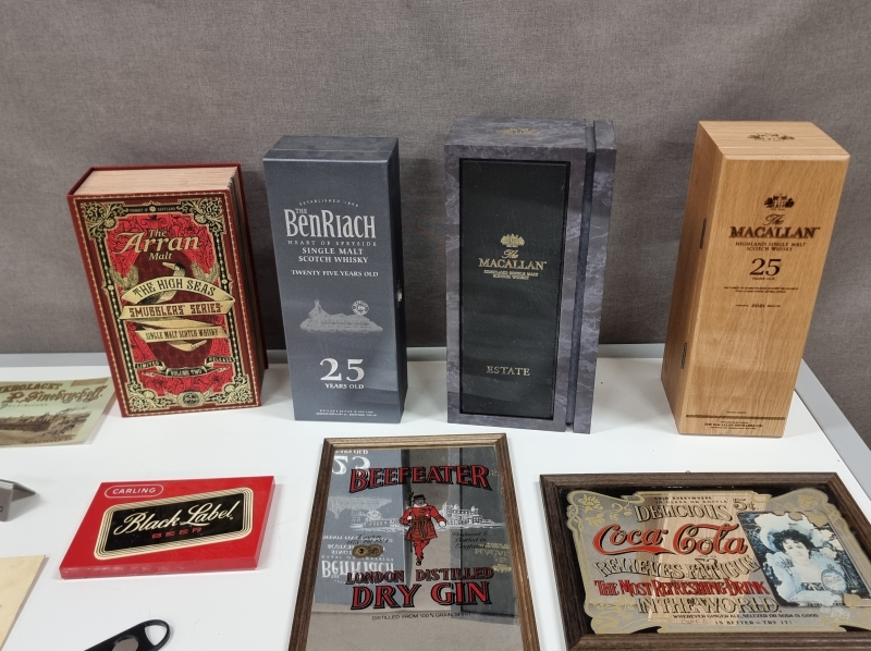 #2425 Hyvä erä baarirekvisiittaa, mm. tyhjiä viskilaatikoita, peilejä