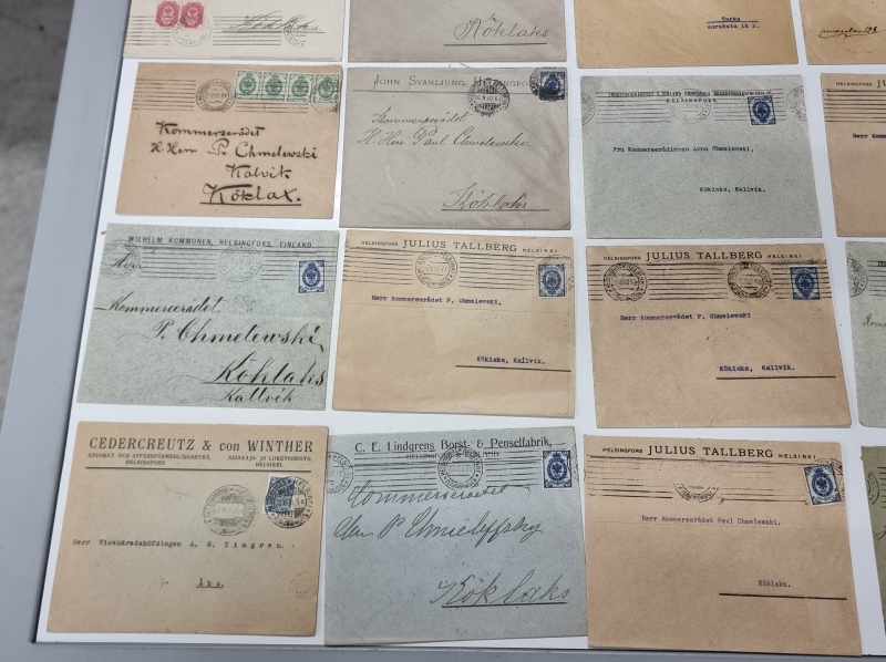 #2320 - Vanhoja kirjekuoria ja postimerkkejä kansiossa