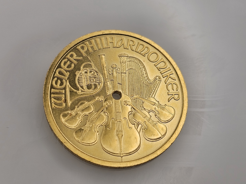 Paino 15,5g. Kolikossa reikä. Pitoisuus 999/1000