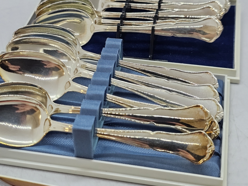 #1287 6+6kpl hopeisia kahvilusikoita + otinhaarukka