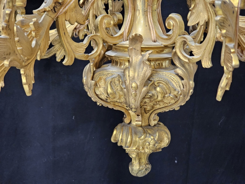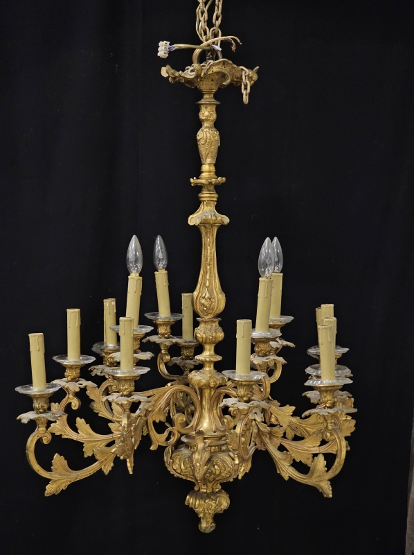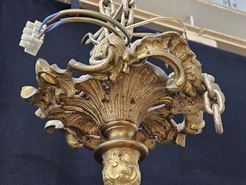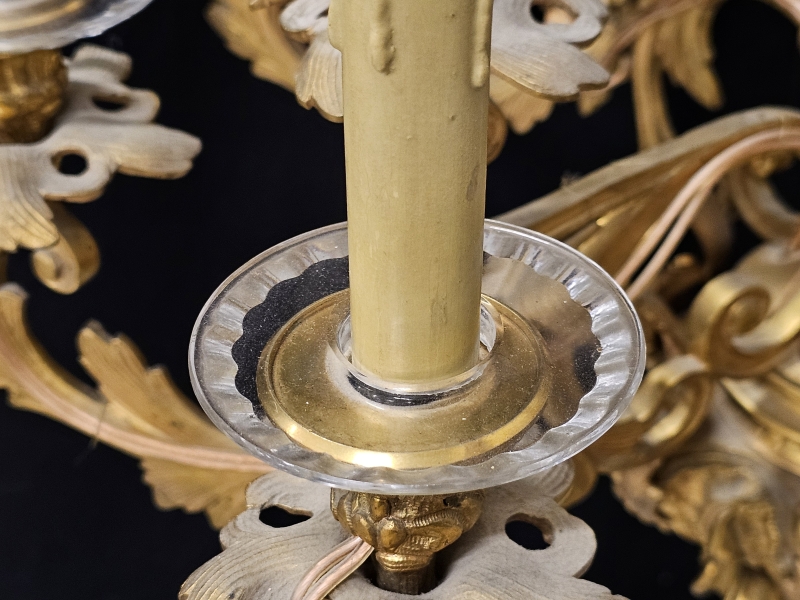 #1908 Vanha näyttävä messinki/pronssi kattokruunu lasimanseteilla