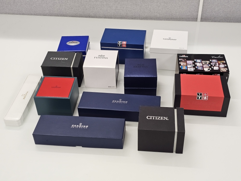 #1316 Erä tyhjiä kellojen koteloita: Mm. Citizen, Tissot, Zenith ym.