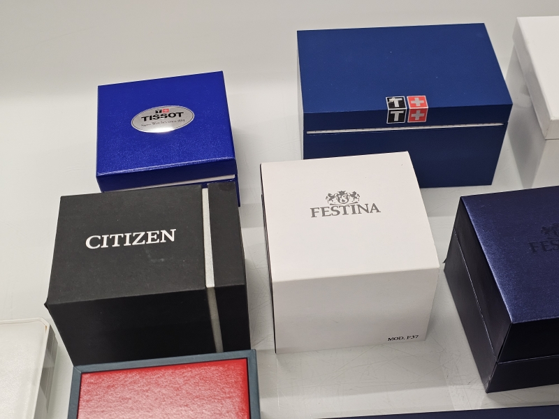 #1316 - Erä tyhjiä kellojen koteloita: Mm. Citizen, Tissot, Zenith ym.