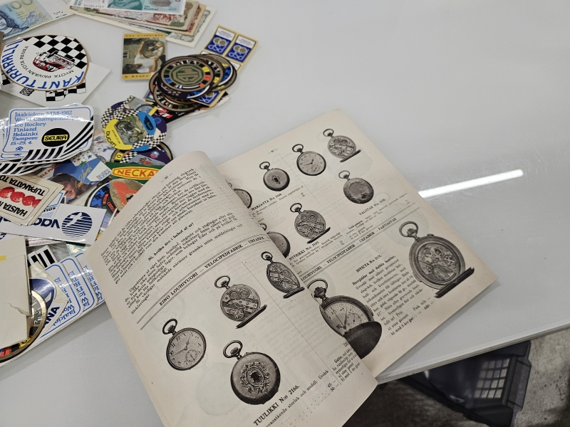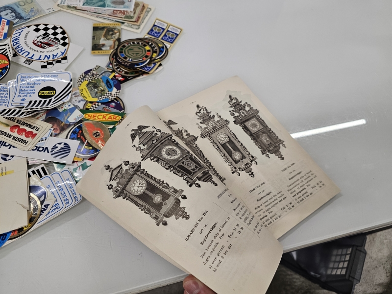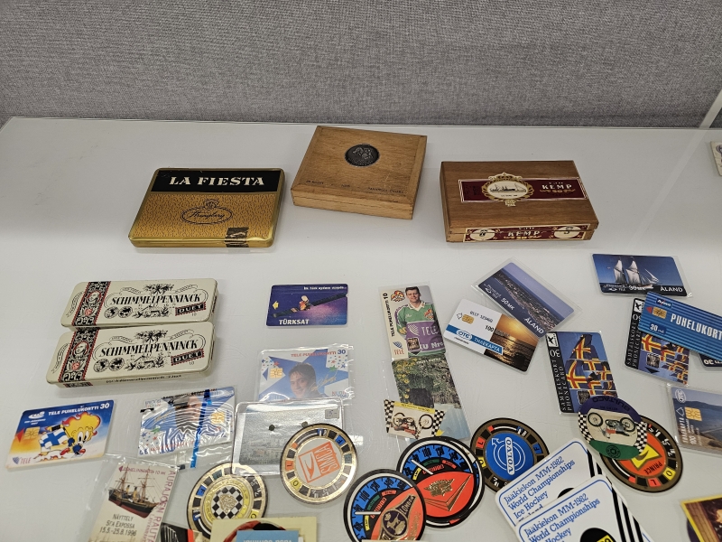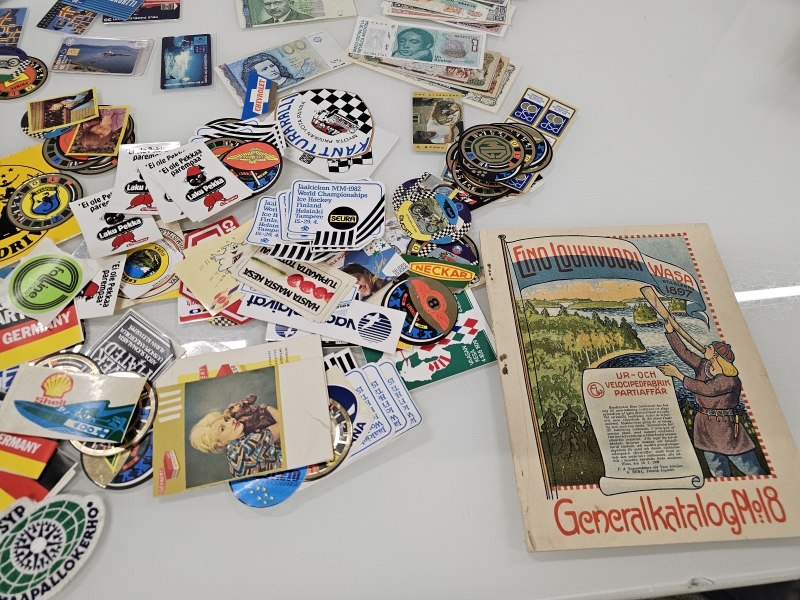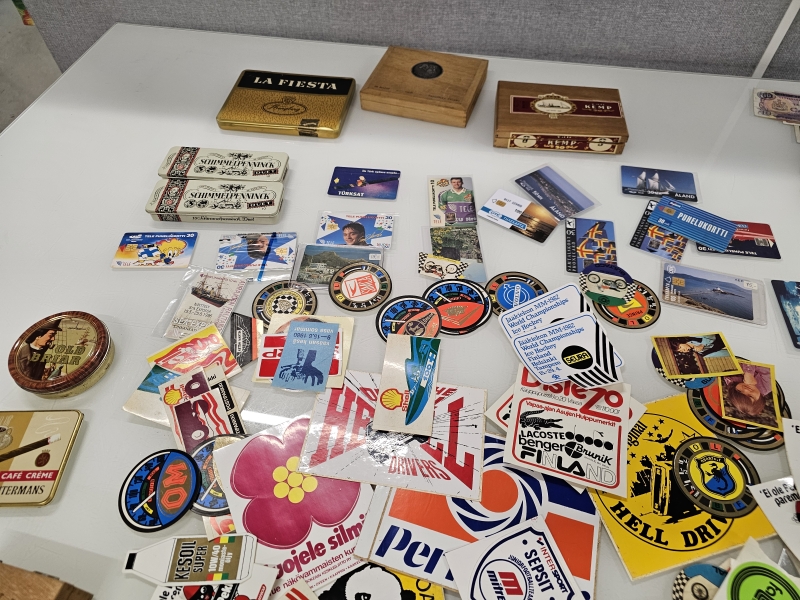 #2399 Erä puhelukortteja, tarroja ja ulkomaalaisia seteleitä ym.