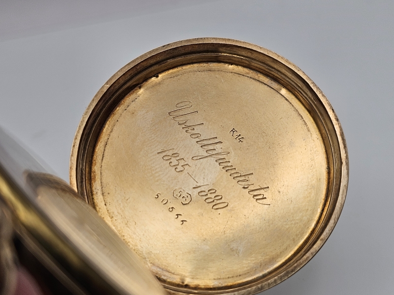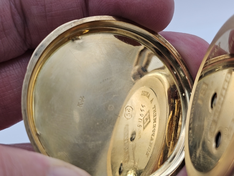 Ei avainta. Bruttopaino 74,5g. Halkaisija 48mm. Myös välikansi kultaa