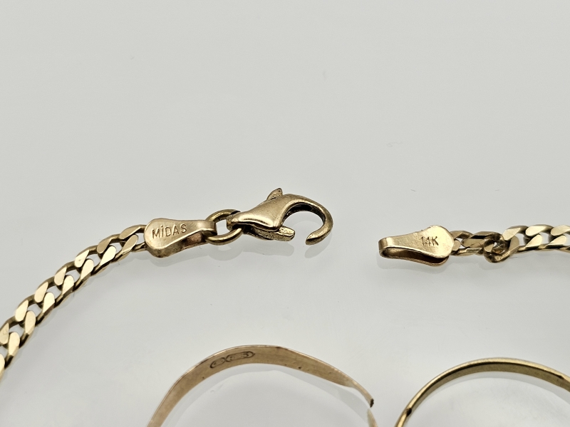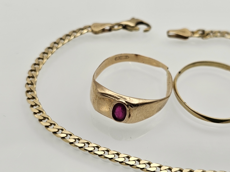 #1402 14k kultainen sormus ja ranneketju jossa lukossa vika + katkennut sormus, 6,78g