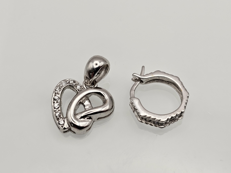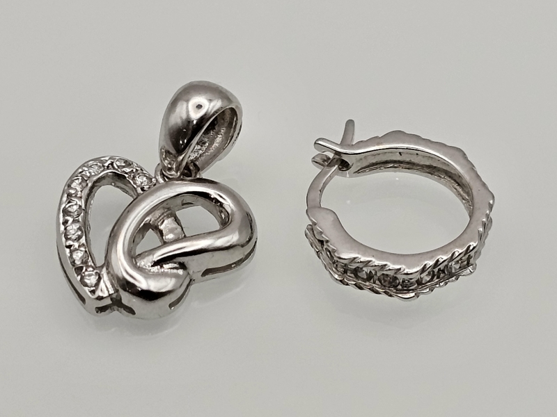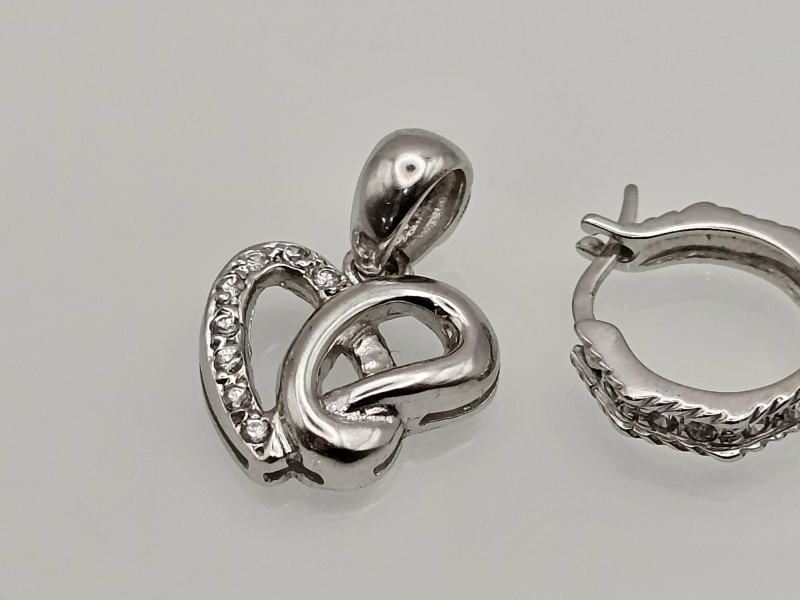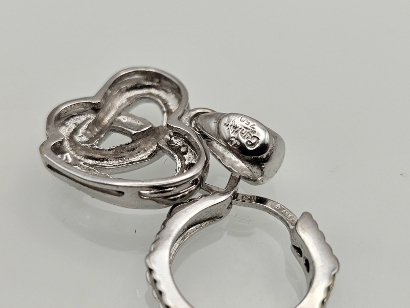 #1404 18k valkokultainen riipus ja yksittäinen korvakoru kivillä, 6,02g