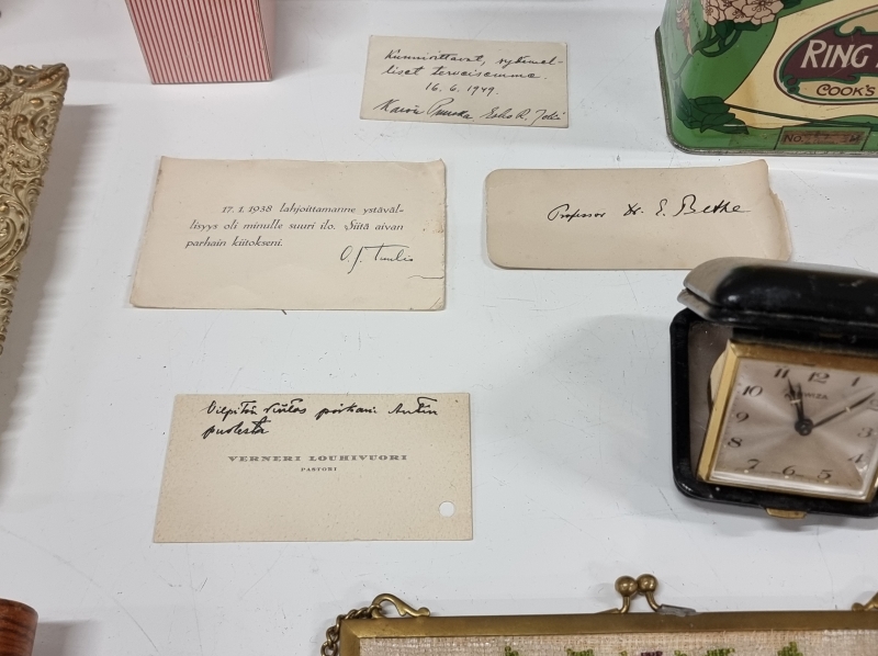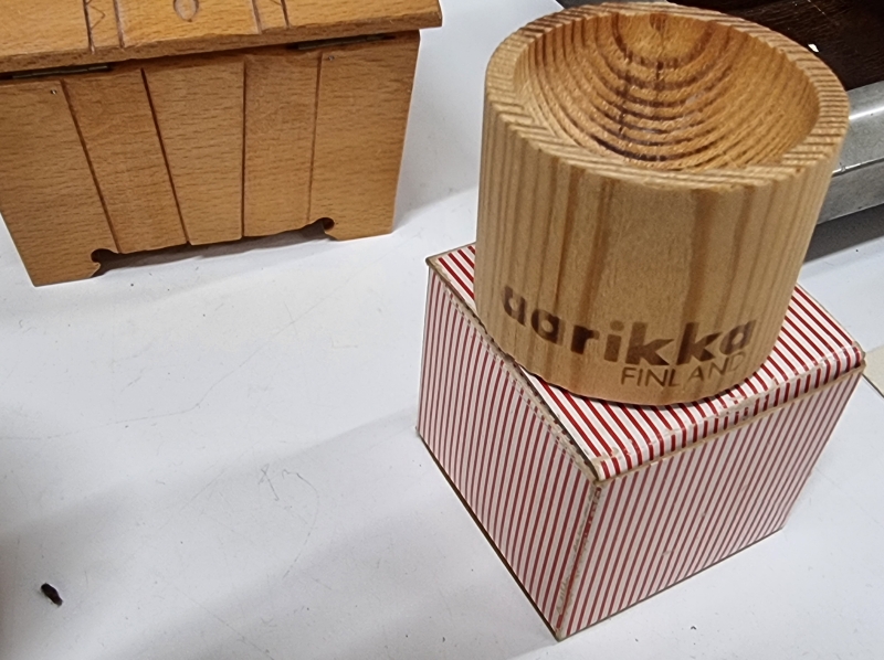 #2431 Erä tavaraa: Vanha käsilaukku, rasioita, Aarikka ym.