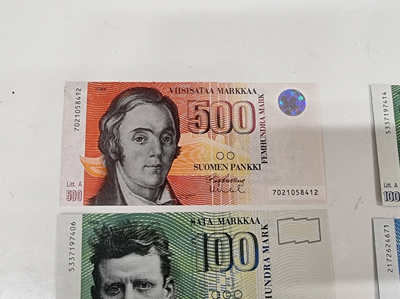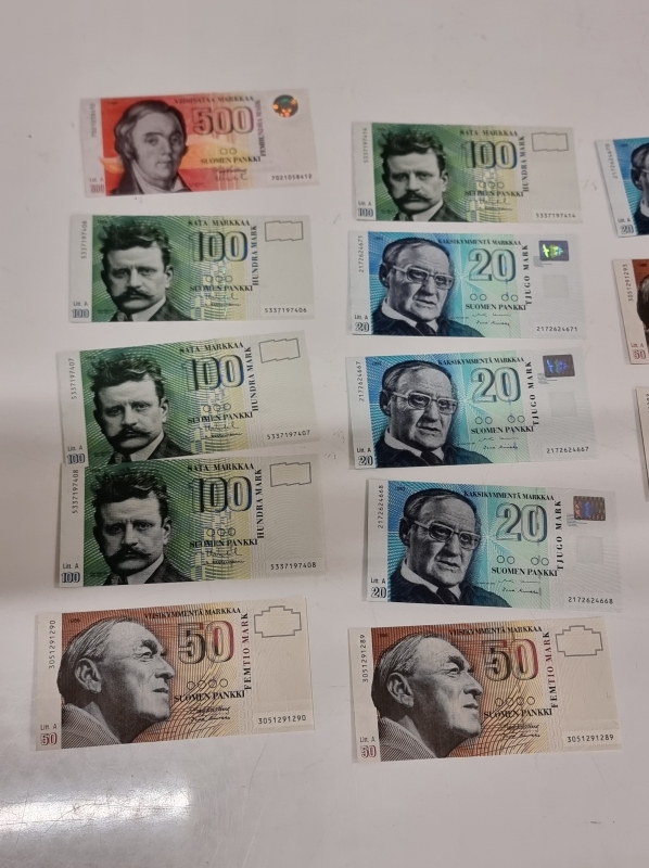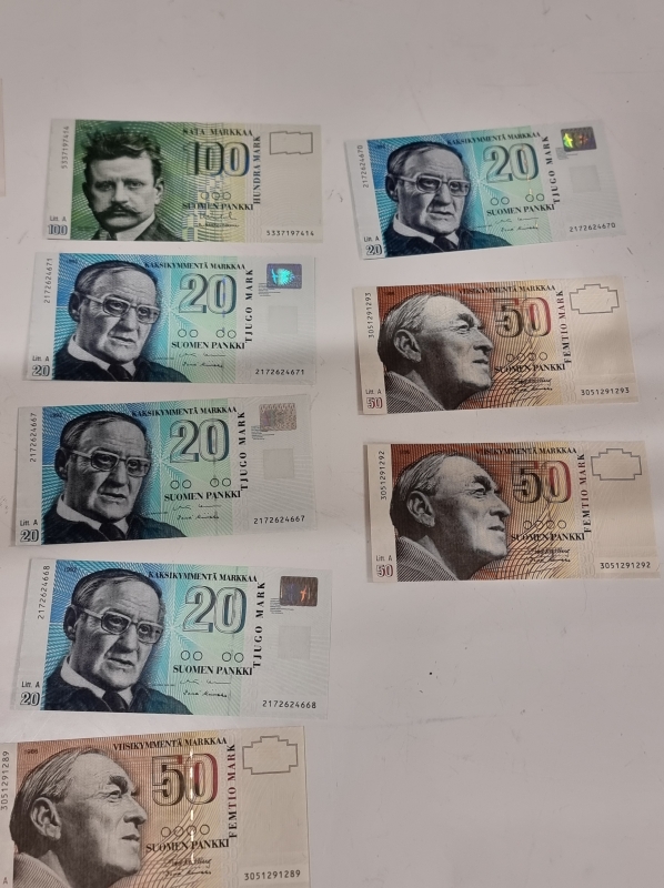 #2439 Vanhoja suomalaisia seteleitä vuodelta 1986