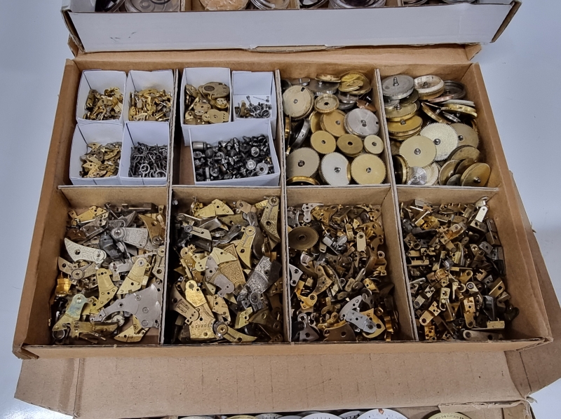 #2446 - Taskukellon osia ja kellotauluja (3 laatikkoa)