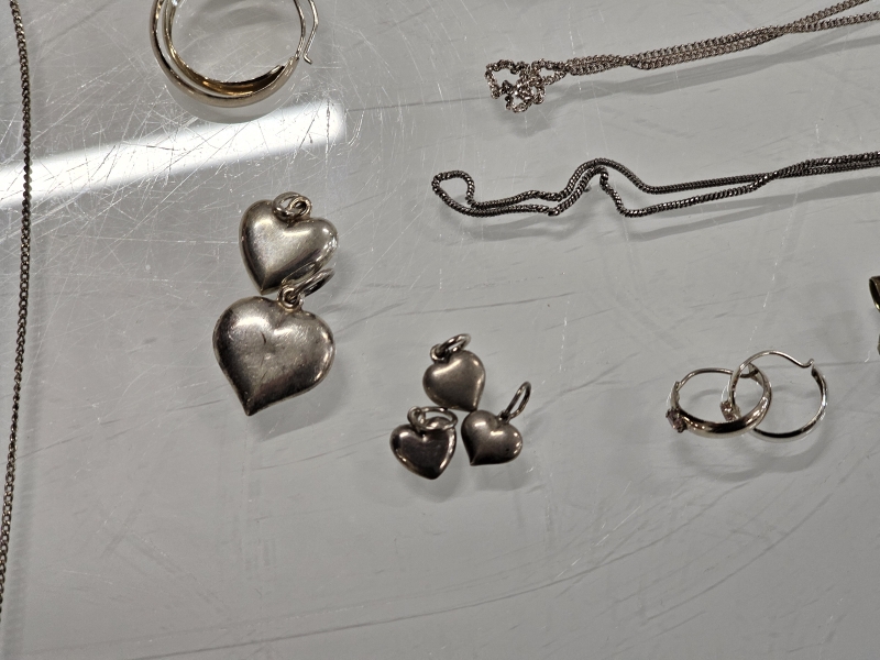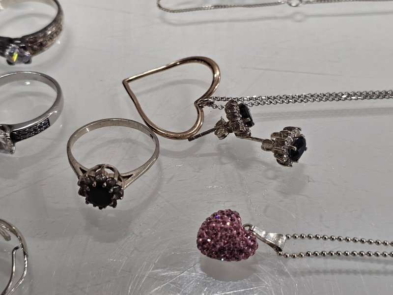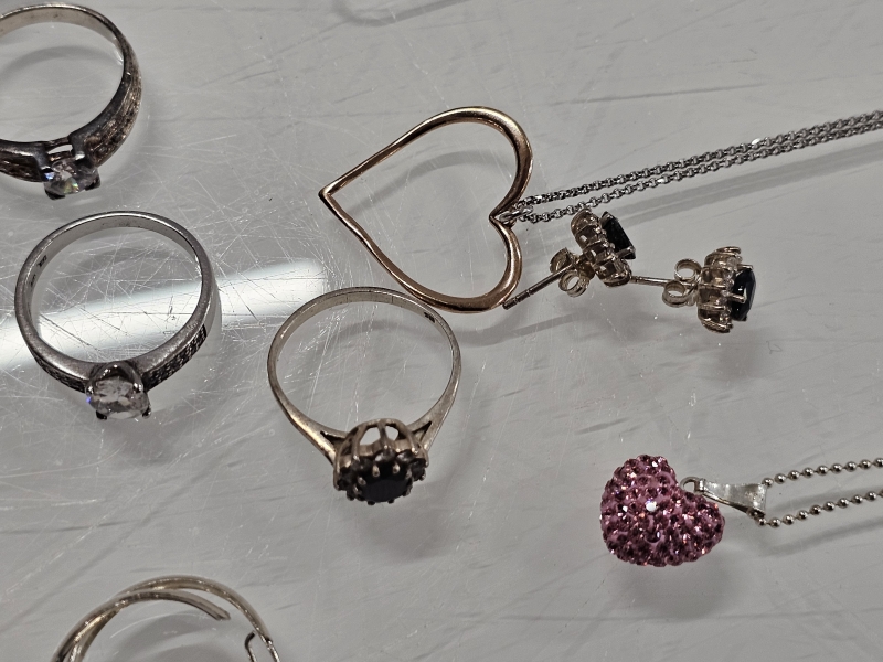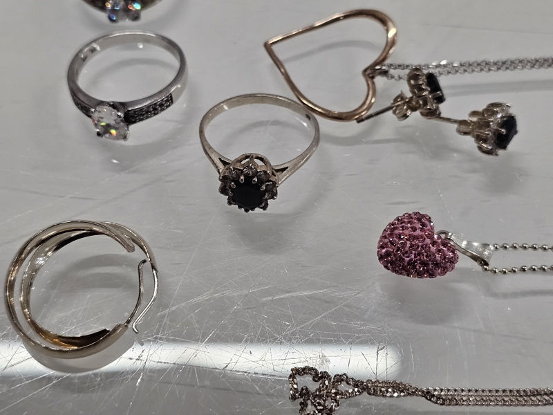 #1323 - Erä hopeakoruja, mm. kaulaketjuja ja sormuksia