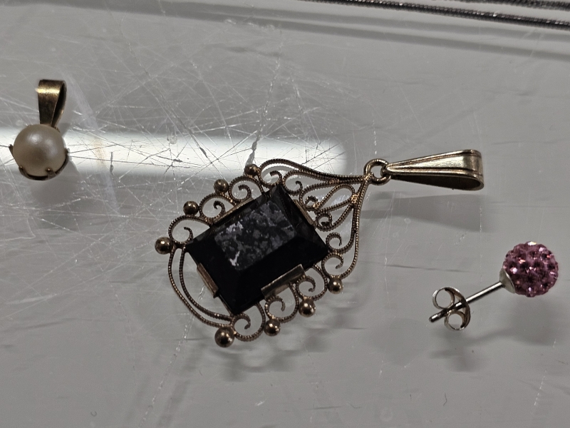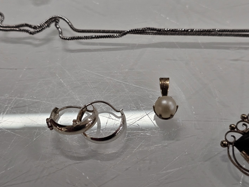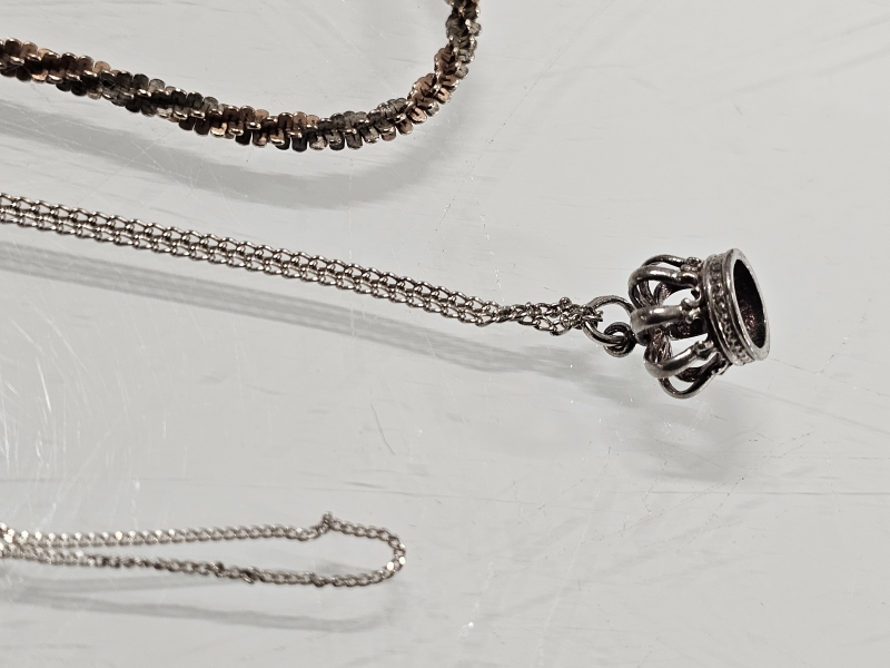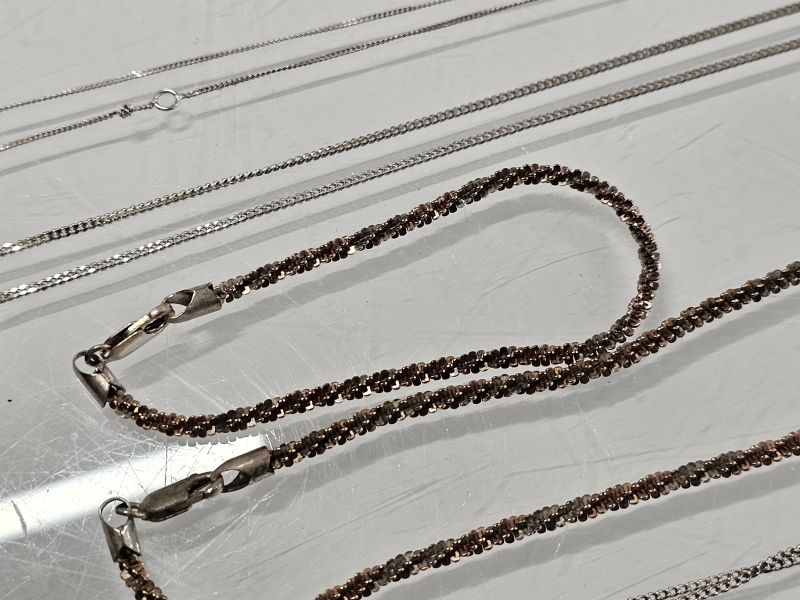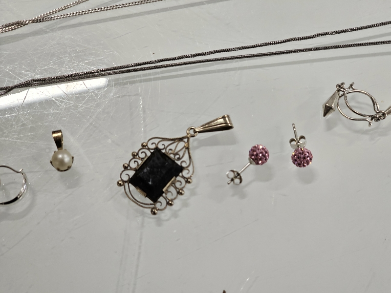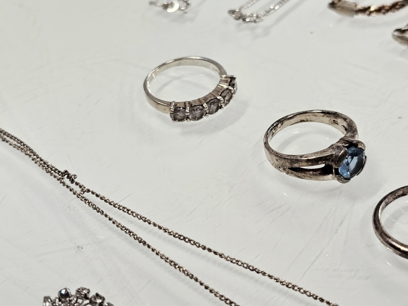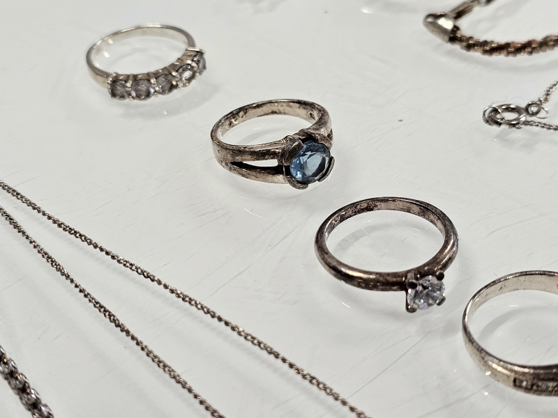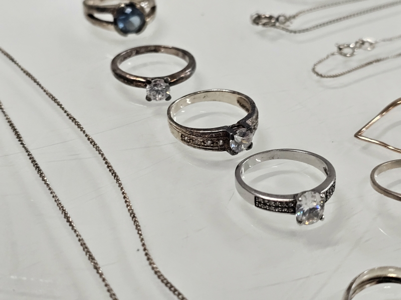 #1323 Erä hopeakoruja, mm. kaulaketjuja ja sormuksia