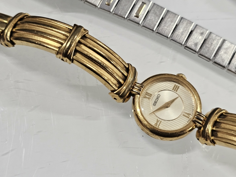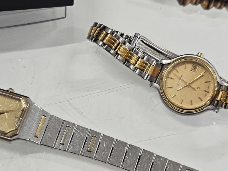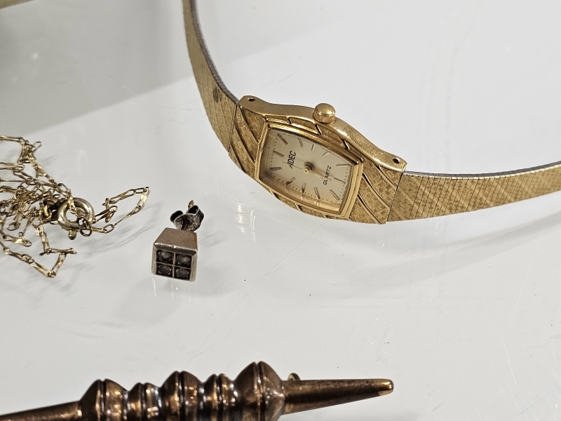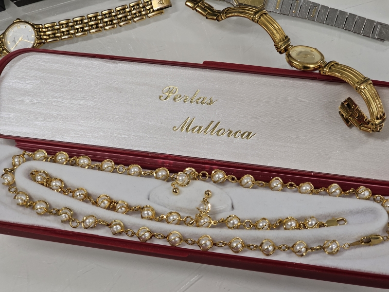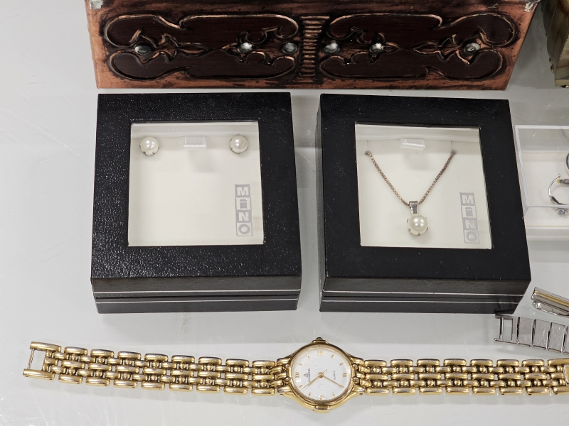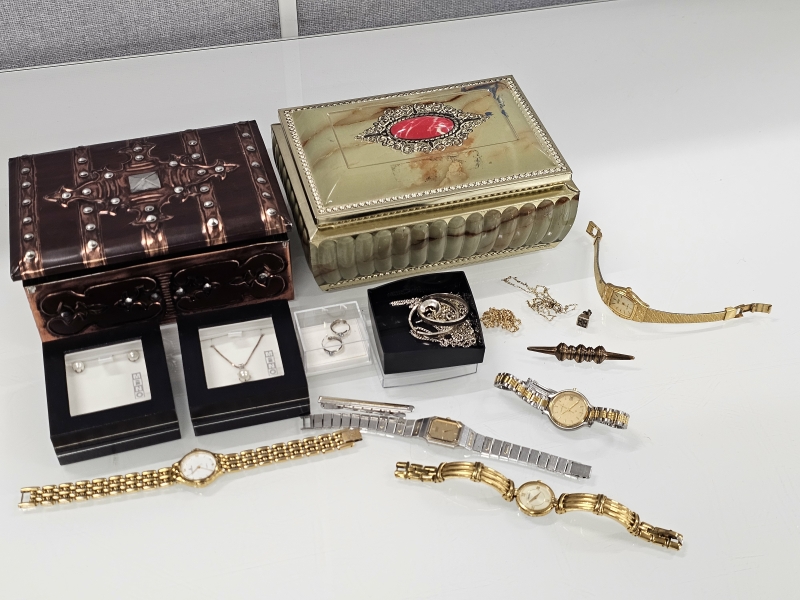 #1324 Erä koruja ja kelloja [Seiko, Certina ym.], osa koruista hopeaa