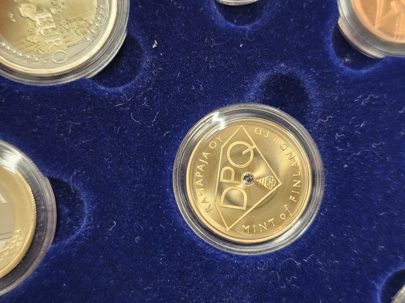#1327 Kolikkosarja: Vuoden 2003 DPQ sarja kultaisella jetonilla jossa 0,02ct timantti, 12g