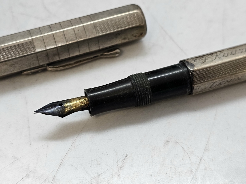 #1338 Hopeinen kynä + hopeiset chippendale kakkuottimet ym.