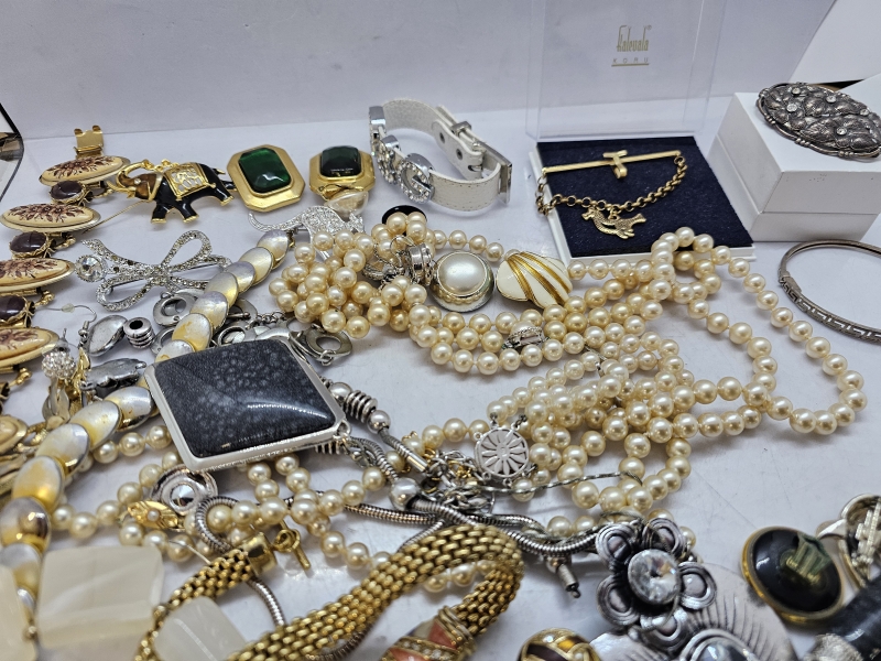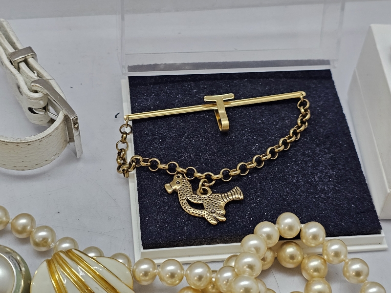 #1339 Hyvä erä koruja: Mm. Kalevala koru, hopeinen rintaneula ja rannekoru, helmikoruja hopealukoilla