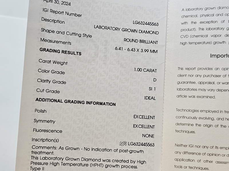 #1357 1,00ct laboratoriotimantti, D SI1 IGI-todistuksella