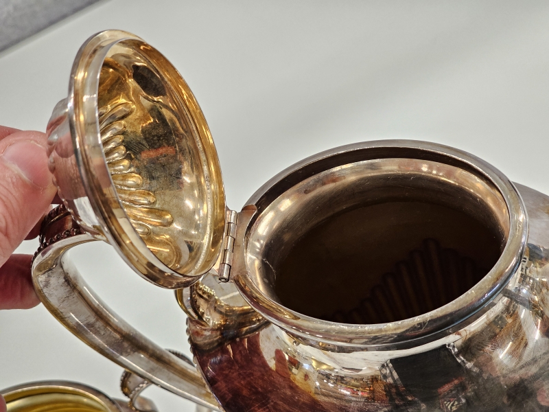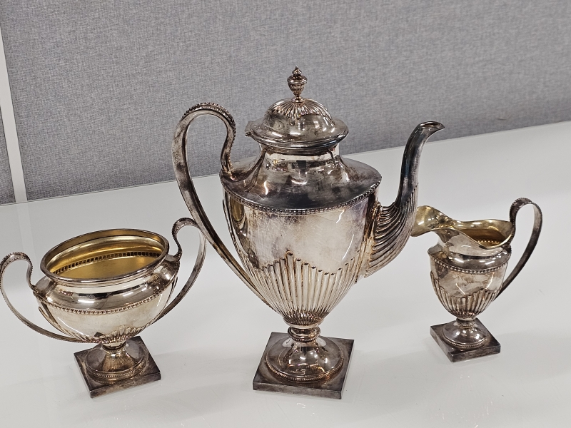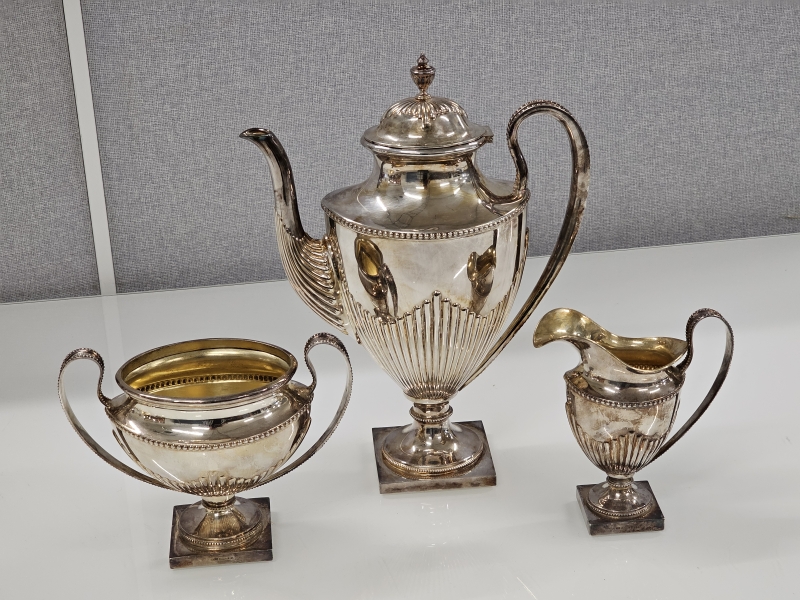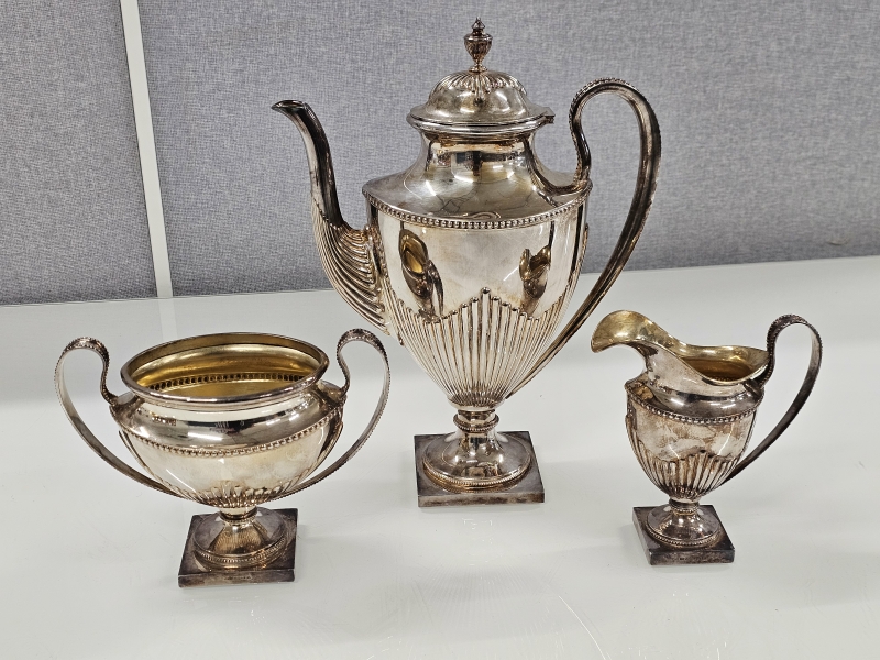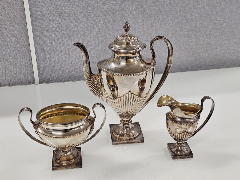 #1359 Hopeinen iso kahviastiasto, 3-osaa yhteensä yli 1,4kg!