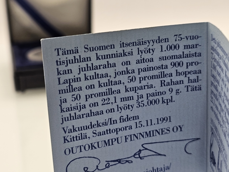 #1371 - Kultakolikko: Itsenäisyyden 75v juhlaraha, 9g