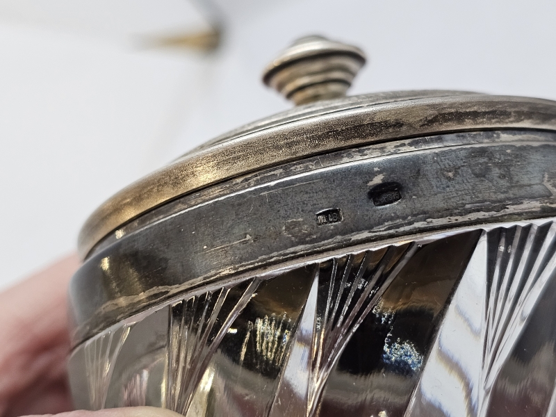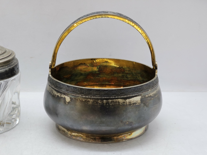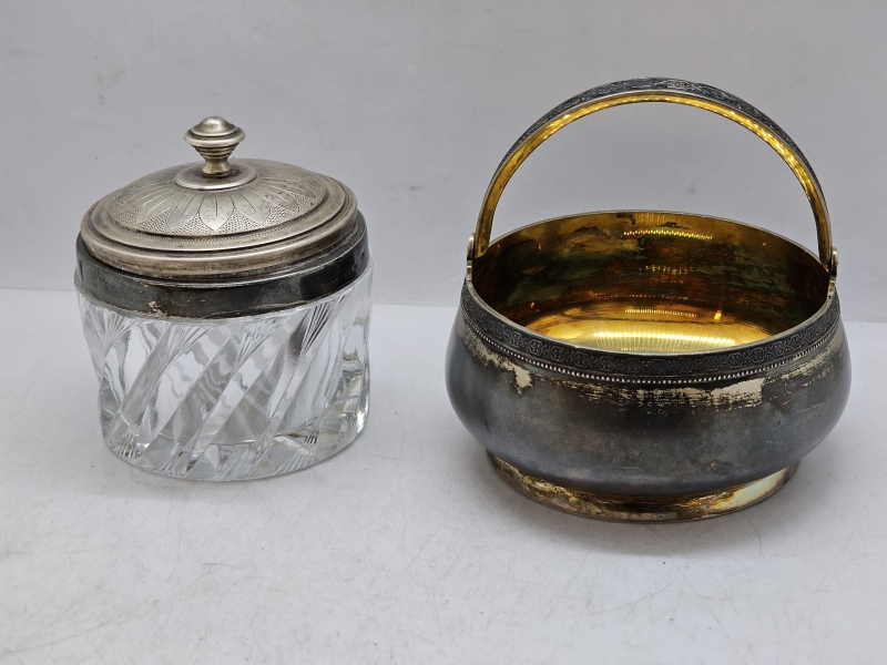 #1387 - Neuvostoliittolainen hopeakori + kristallipurkki hopeapannalla