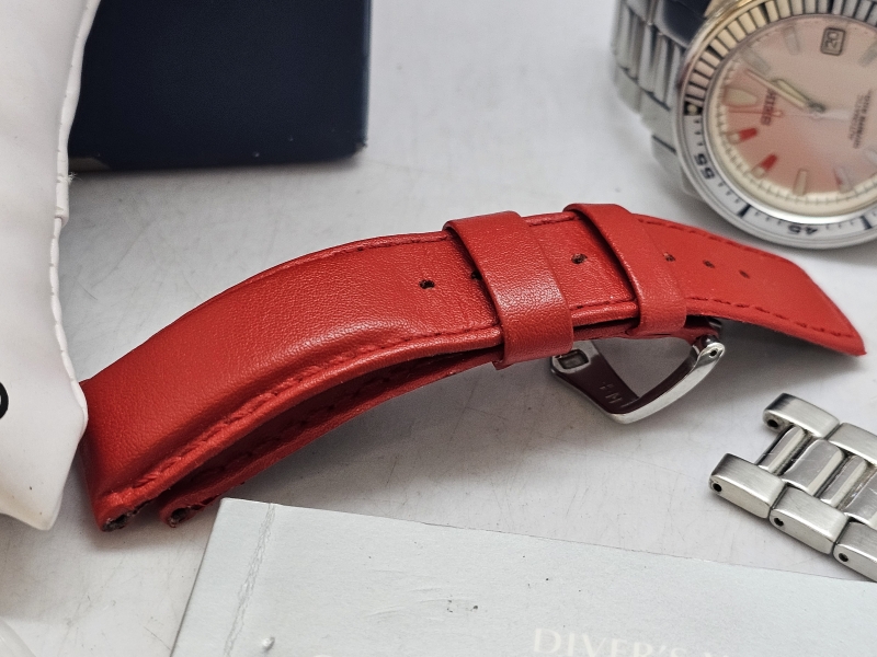 Tuntuisi toimivan. Mukana laatikko, nahkaranneke ym. osia. Halk: 42,5mm. Ref: 7S35-00B0