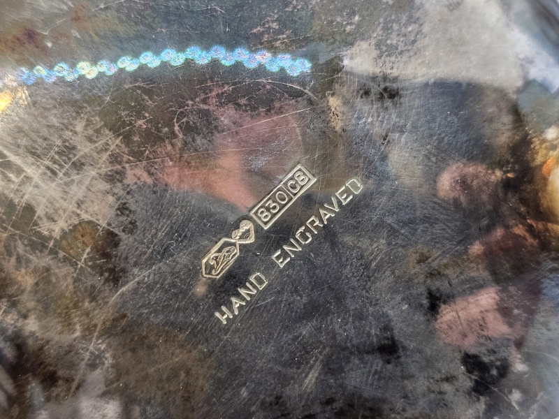 #1432 Hopeinen kahvikalusto käsinkaiverretuilla koristeilla, 3-osaa