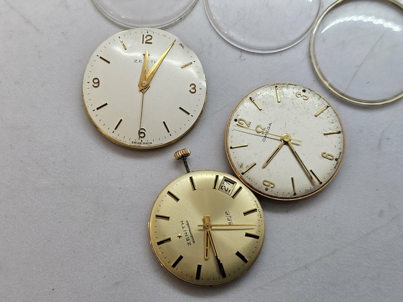 #1415 - 3kpl kellojen koneistoja: 1kpl Omega & 2kpl Zenith + lasikkeet