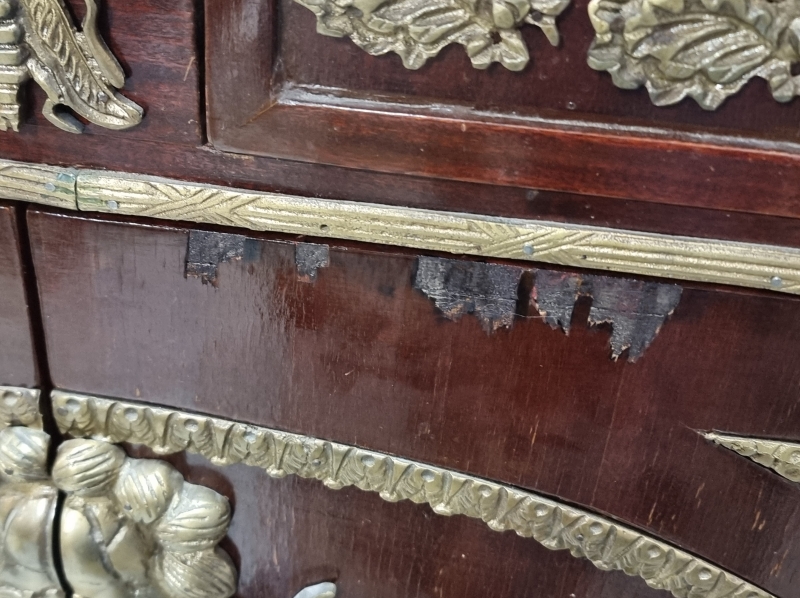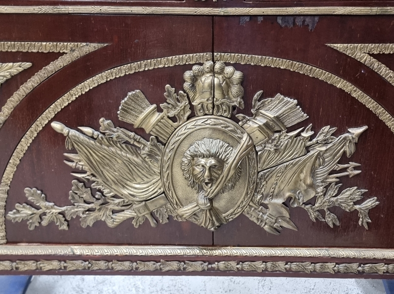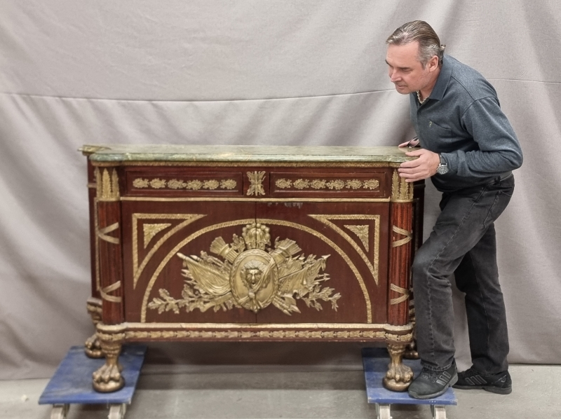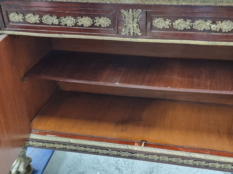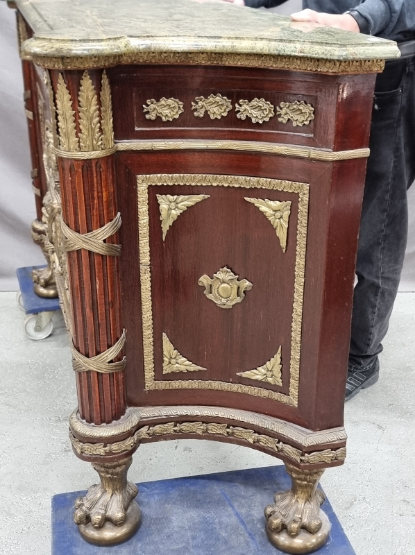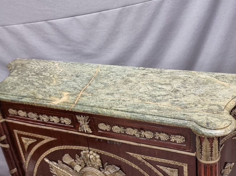 #2453 Poikkeuksellisen näyttävä senkki pronssi ja messinkilyötteillä