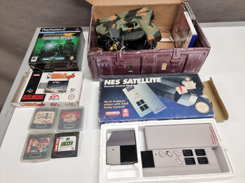 #2024 - Nintendo NES Satellite langaton ohjain, pelejä ym.
