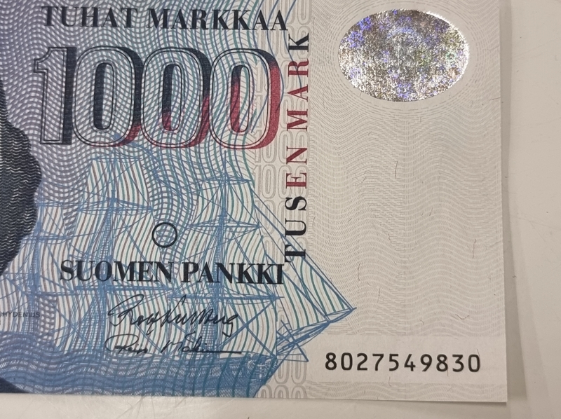 #2067 1000 mk seteli vuodelta 1986. Litt. A