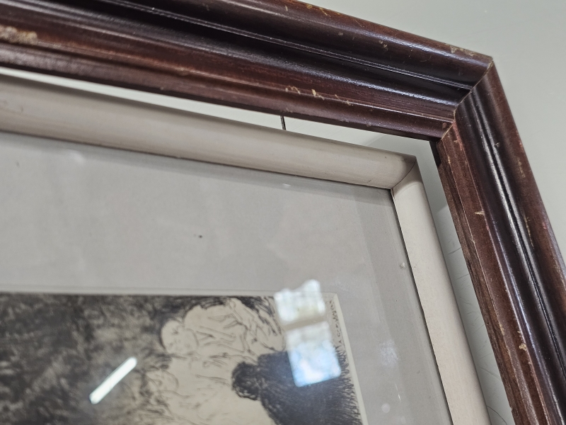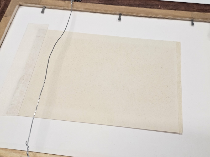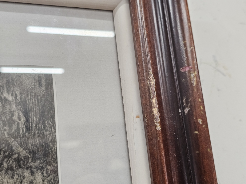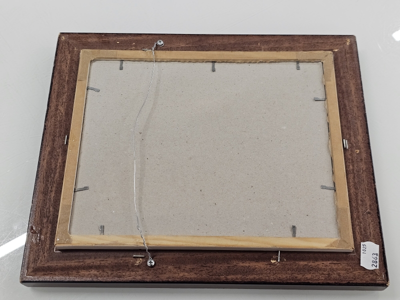 Kehyksineen 27,5cm x 32,5cm. kuvakoko n. 9,6cm x 15cm. Taulun sisempi osa irti ulkokehyksestä.
