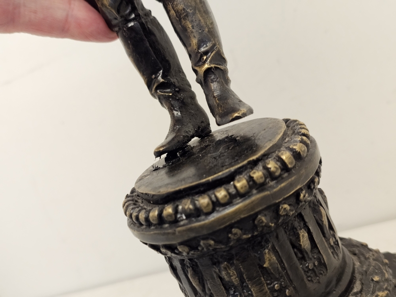 Patsas hieman huonosti kiinni jalustassa. Korkeus 35,3cm