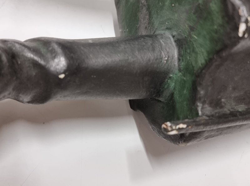 Korjauksia ja vikoja. Piippu puuttuu. Korkeus 57cm.