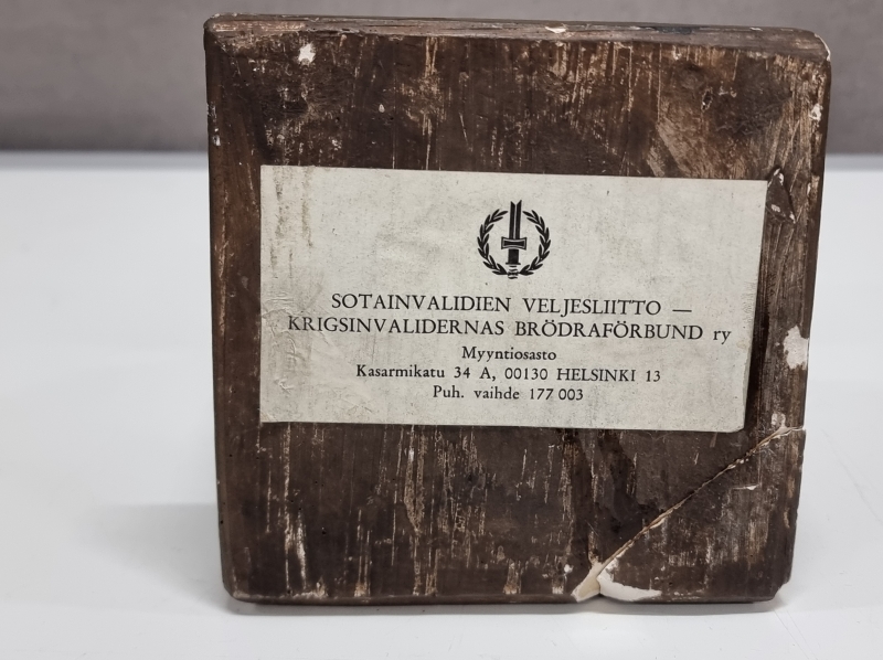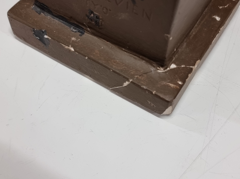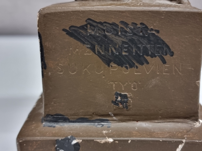 Vikoja molemmissa. Lotta-patsaassa liimaus. Patsaan korkeus 35cm. Reliefin leveys 35cm.