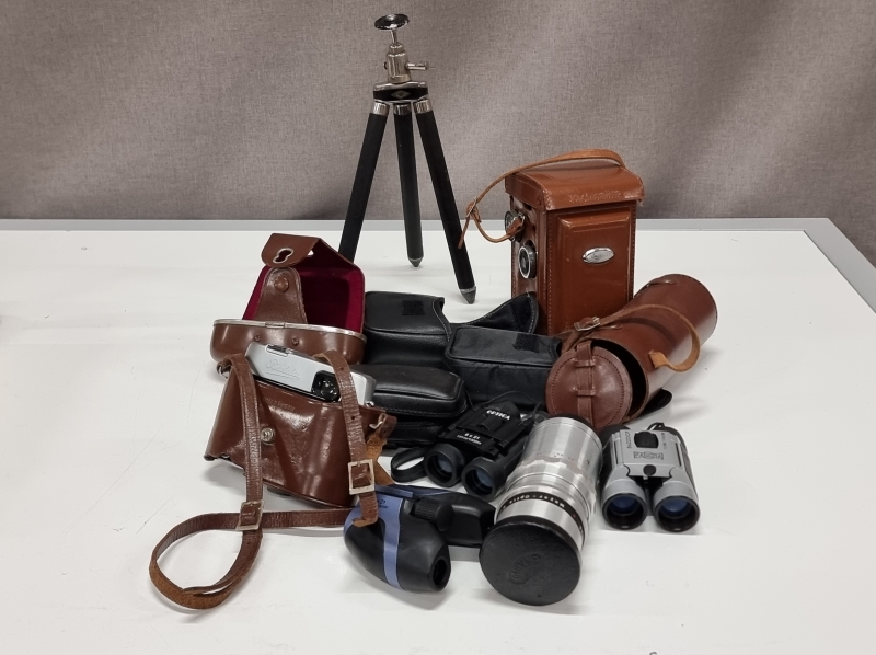 #2455 Kameroita + kiikareita, mm. Panora, Balda