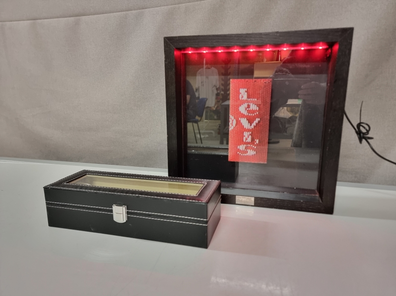 #2072 - Levis-mainostaulu led-valoilla ja kellokotelo kuudelle kellolle