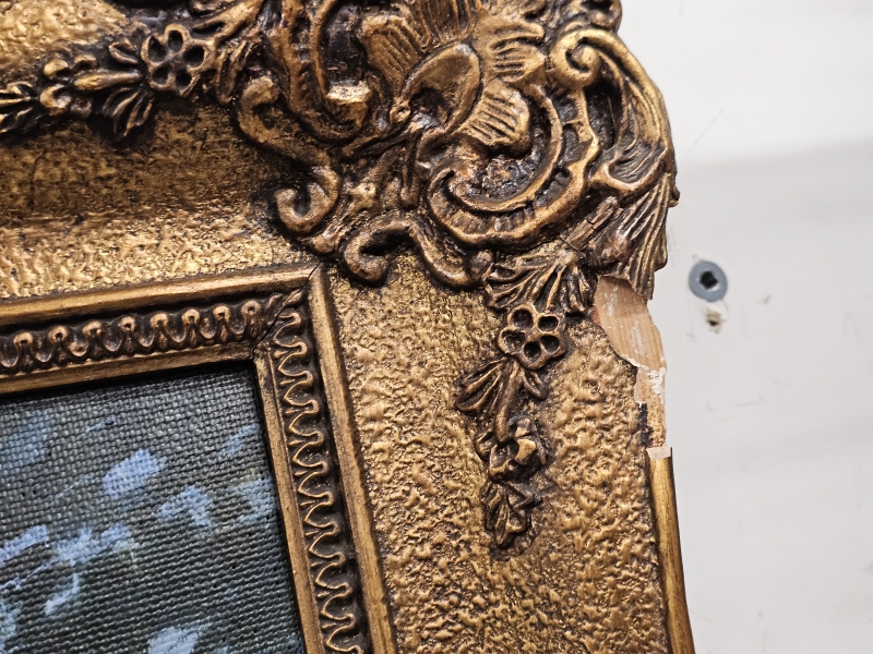 Kehyksineen 67cm x 76cm. Kehyksissä puutteita