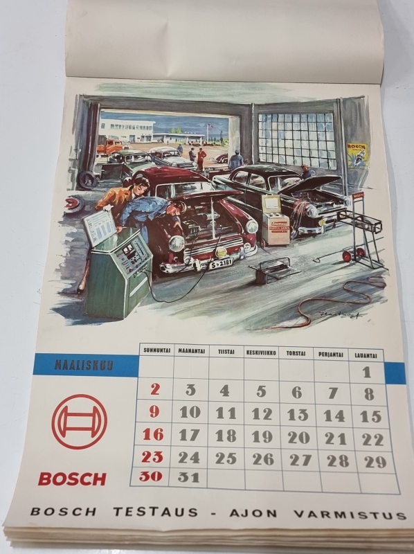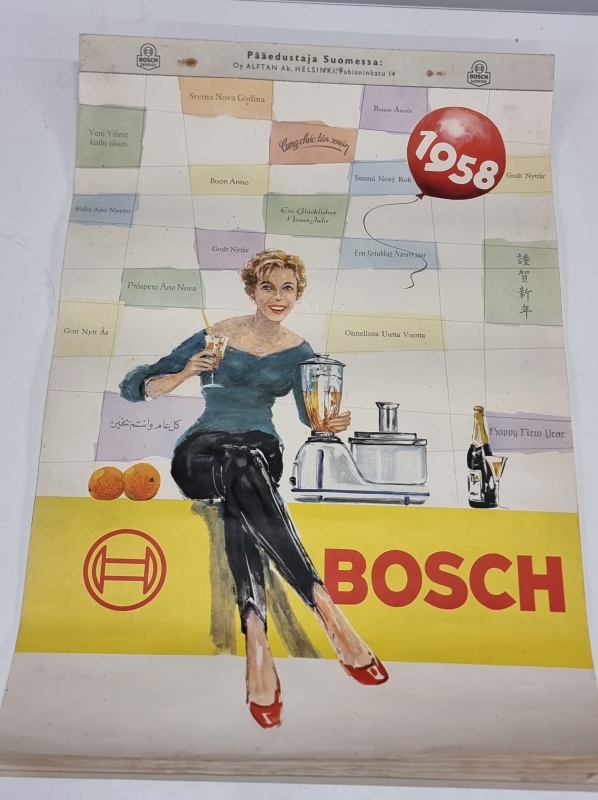 #2266 - Harvinainen Bosch seinäkalenteri vuodelta 1958