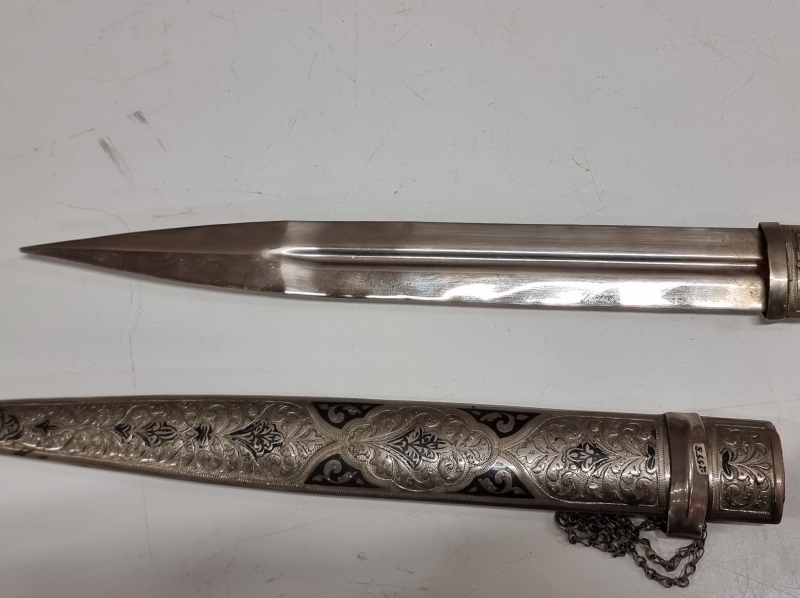 #1758 Vanha leimattu Kindjal-tikari niellokoristeilla